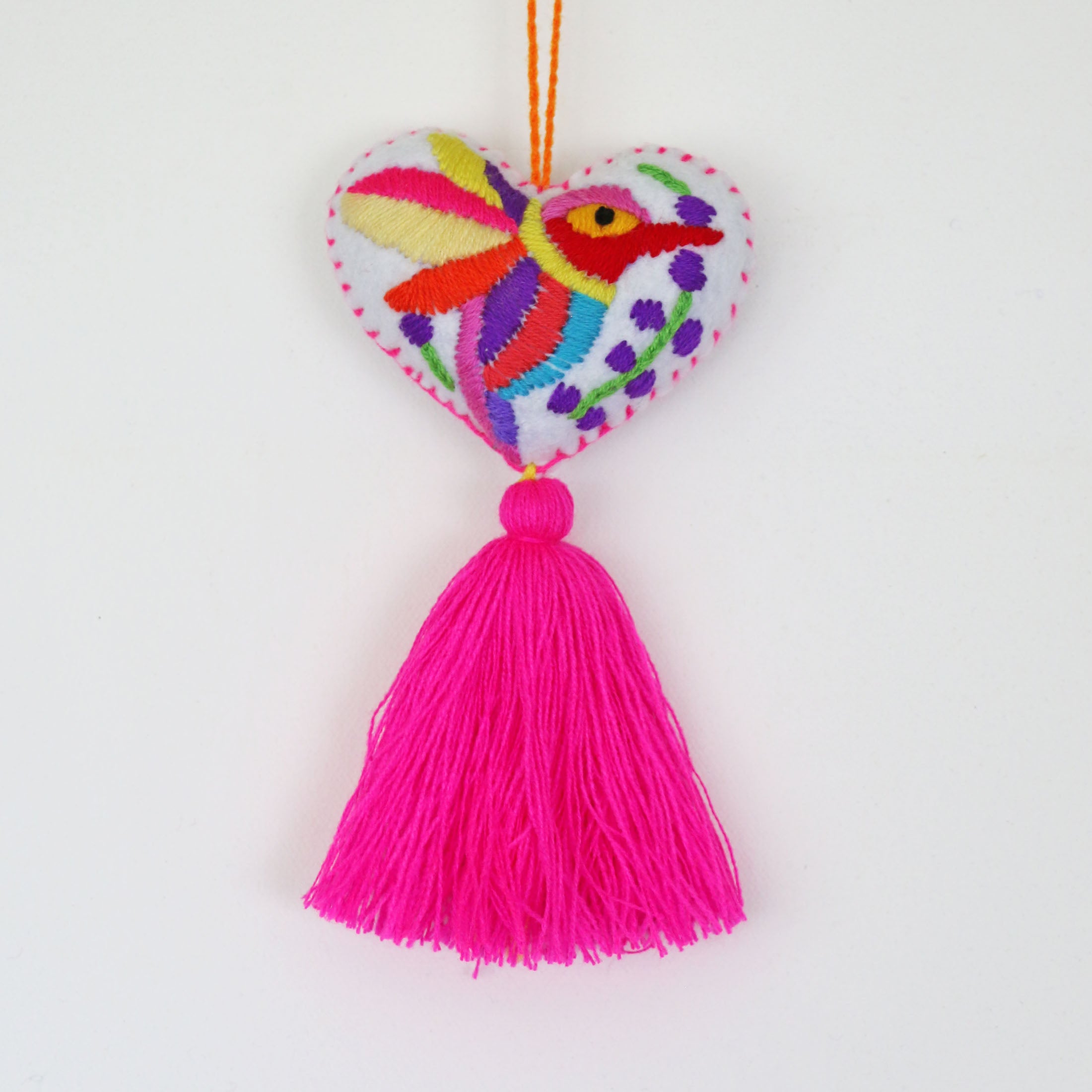 Handcrafted Atomi Bird Felt Charm featuring intricate embroidery and a decorative tassel. Each piece is uniquely made, perfect for personalising your bag, wall or home decor.