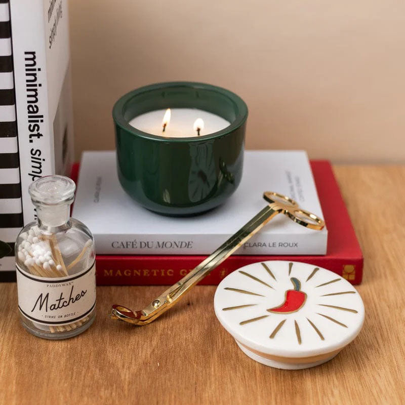 Turn up the heat. This vibrant green glass vessel is finished with a hand-painted ceramic chilli pepper lid, bringing bold colour, playful symbolism, and major personality to your space.